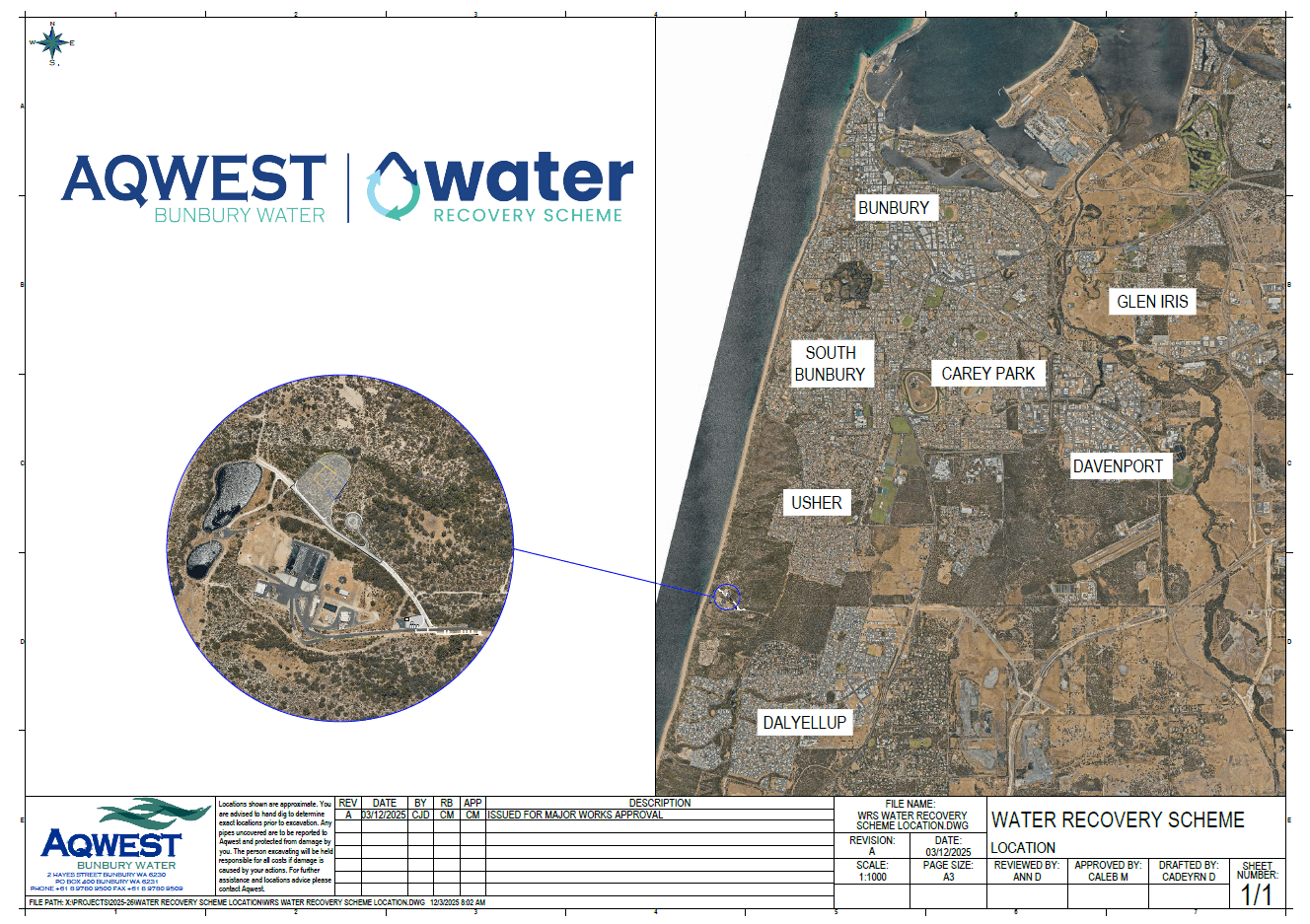 Aqwest proposes to build and operate a recycled water treatment plant at Lot 5262 on deposited land 183085, Ocean Drive, Dalyellup to deliver fit-for-purpose recycled water to the Bunbury region. Construction is planned to commence in March 2026 with estimated completion by September 2027.